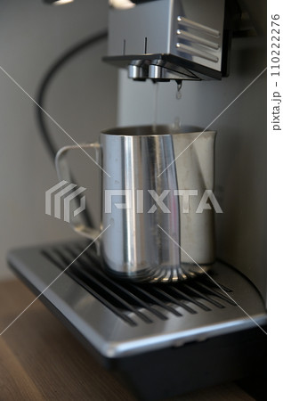 Coffee flows from a fully automatic coffee machine into a coffee pot