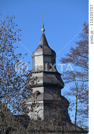 Slate tower of the manor house called Gut Dyckhof in Meerbusch, Germany