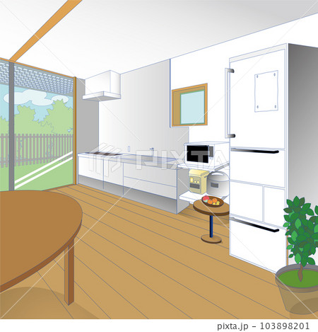大きな窓のあるダイニングキッチンのベクターイラスト