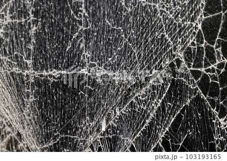 glass broken into a large number of pieces and cracks