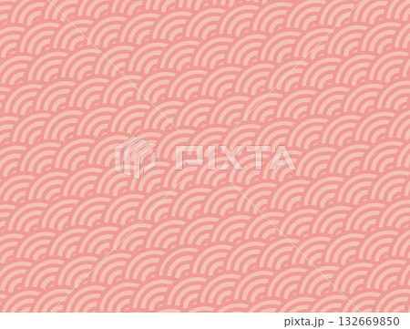 白地にピンク色の青海波柄、波模様背景素材イラスト