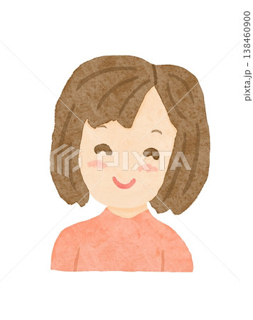 白バックにピンクの服を着た笑顔女性の上半身イラスト