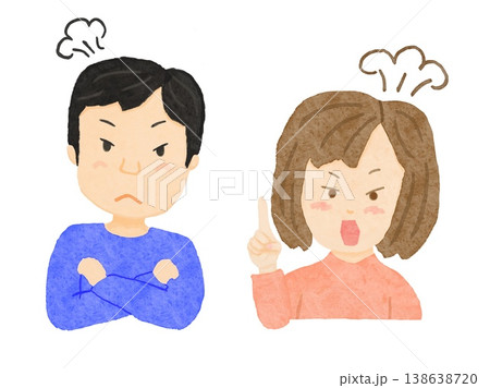 白バックに上半身の女性と男性が喧嘩して怒っているイラスト