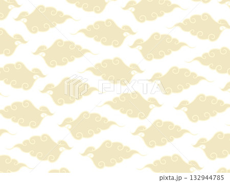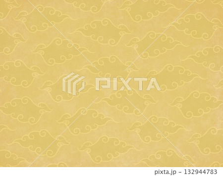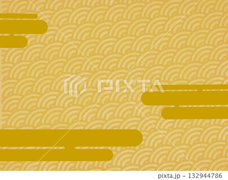 ゴールドの波柄バックに和風雲模様入りの背景素材イラスト