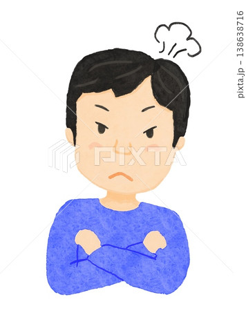 白バックに上半身の男性が腕組みして怒っているイラスト