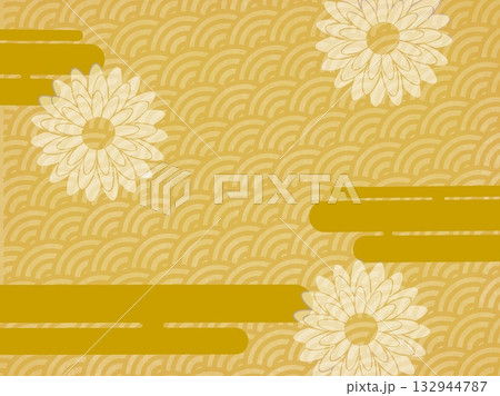 ゴールドをバックに市松模様と白菊の背景素材イラスト!