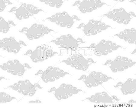 白バックにのシルバーの雲や葉っぱ模様が入った背景素材イラスト