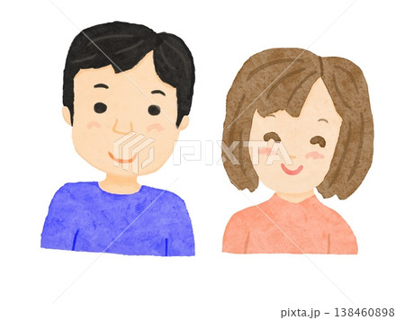 白バックにピンク色の服を着た女性と青い服を着た男性の上半身イラスト