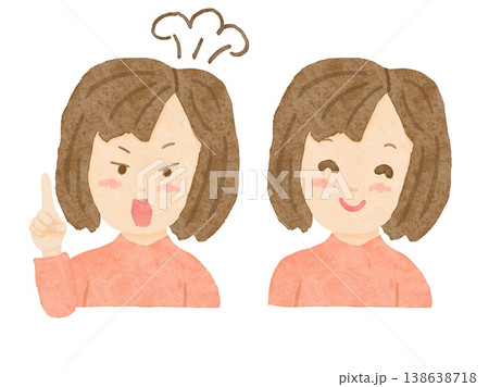 白バックに上半身の女性が二人、指差しして怒っている人と笑顔で笑っている女性のイラスト