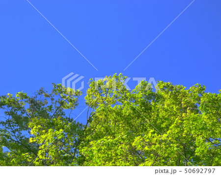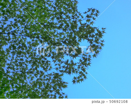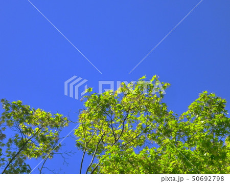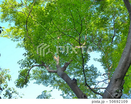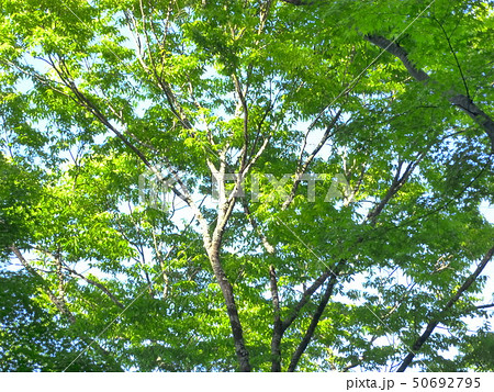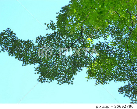 京都市八瀬の「もみじの小径」のあおもみじを下から見た光景