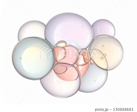 パステルカラーの透明な泡の集合体・抽象的なシャボン玉の背景