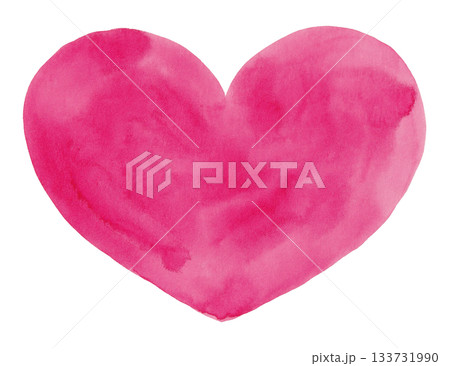 水彩で描いた大きなハートイラスト 濃いピンク色