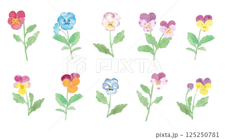 水彩で描いたビオラの背景イラスト素材 背景透明