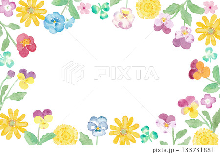 手描き水彩イラスト 春の野花の模様 上下フレーム素材