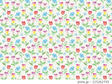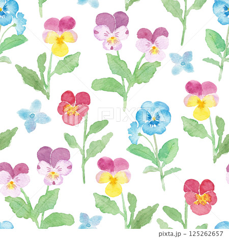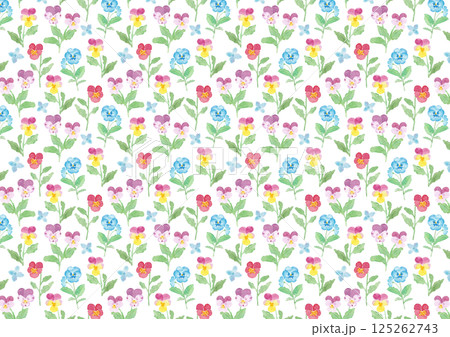 水彩で描いたビオラのイラスト シームレスパターン素材 背景透明