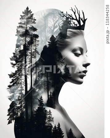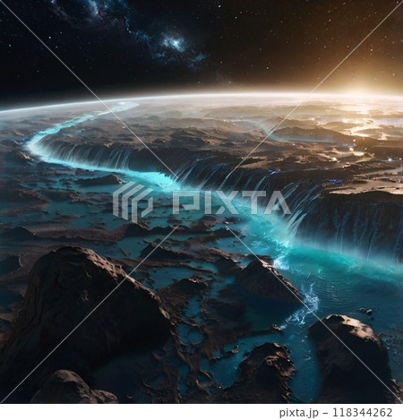 満月の夜に満月が輝く満月に照らされた大地に建つ満月と満月