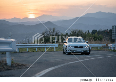 夕焼け ドライブ 運転 道路