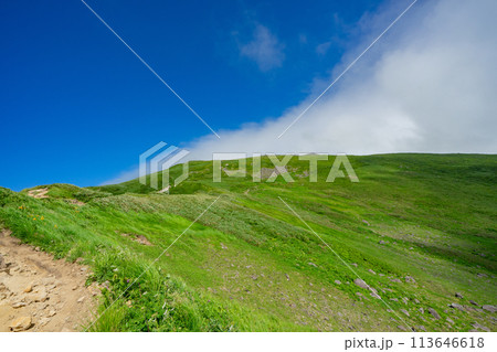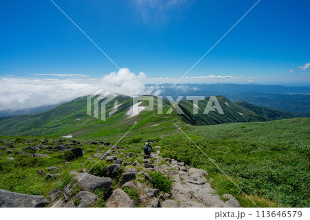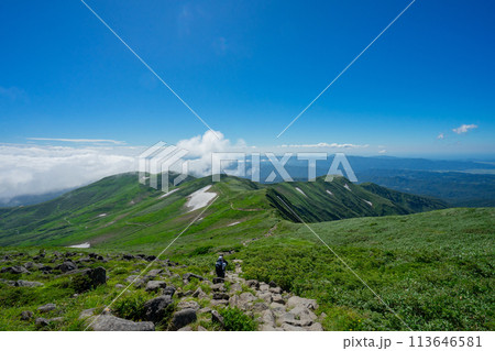 山形 月山 霊峰 登山 青空