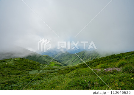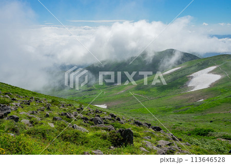 山形 月山 霊峰 登山 雲 景色