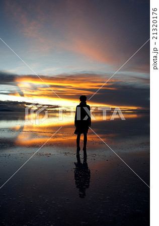 ウユニ塩湖の日没