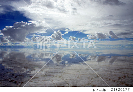 青空と雲のウユニ塩湖