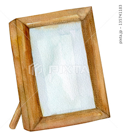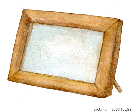 水彩イラスト 手描き 木製の写真たて