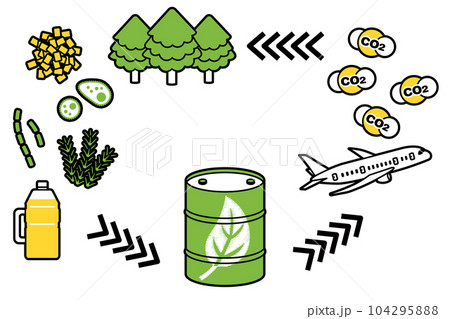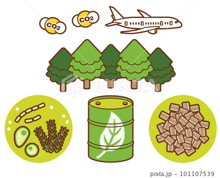バイオ燃料とその原材料のイラストのセット