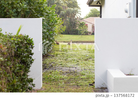 アメリカ、フロリダ州の住宅街に生息する野生のエジプトガン