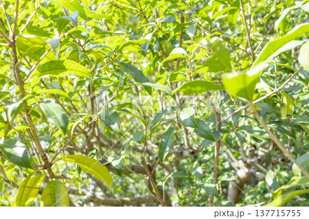 庭に植えられた大きな木。太陽の光を浴びて生命力あふれる。