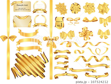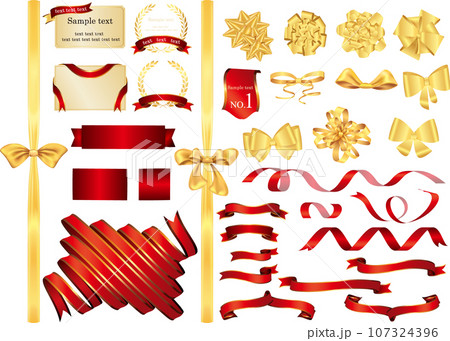 パステルリボンとメダル ベクター イラスト セット レトロ ビンテージ