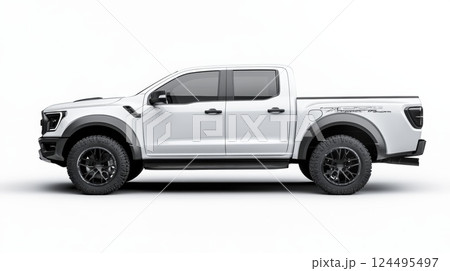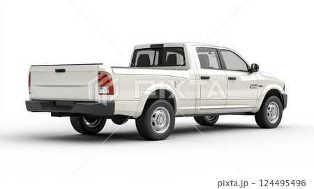 diagonal view of modern white pick up truck on white background