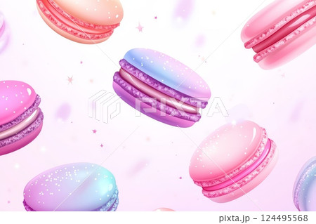 Various colorful of macarons floating on the air isolated on light background