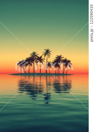 Sunset on a tropical island. Silhouettes of palm trees against a bright orange sunset sky