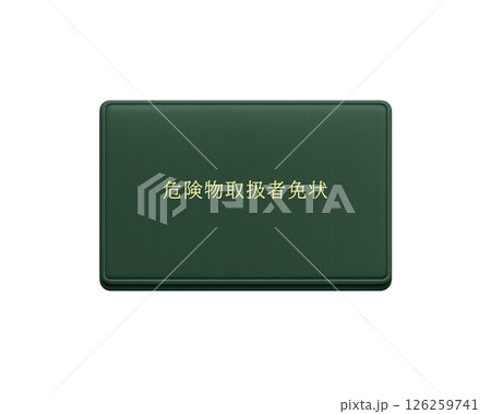 消防法による国家資格の危険物取扱者免状(緑色)のイラスト/正面で背景透明