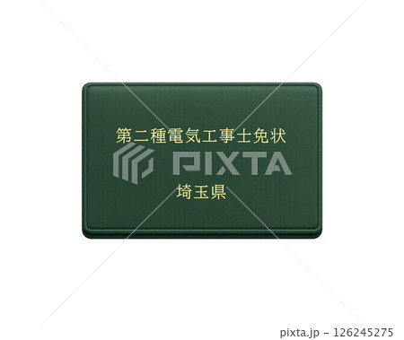 国家資格の電気工事士免状のイラスト(埼玉県 第二種)/正面で背景透明