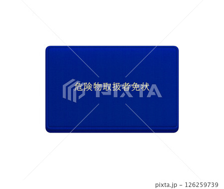 消防法による国家資格の危険物取扱者免状(青色)のイラスト/正面で背景透明