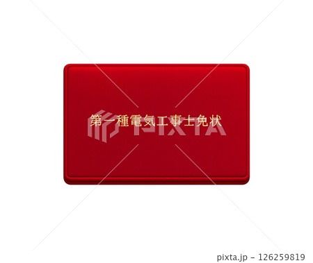 国家資格の電気工事士免状のイラスト(赤・レッド 第一種)/正面で背景透明