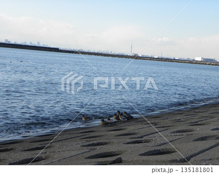 検見川浜海岸の冬の渡り鳥ヒドリガモ