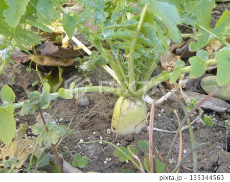 大きく育った家庭菜園のダイコン