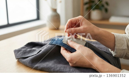 衣服を繕う女性の手元:サステナブルな暮らしとアップサイクル