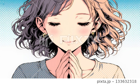 にっこり笑って手を合わせて「お願い」と甘える若い女性