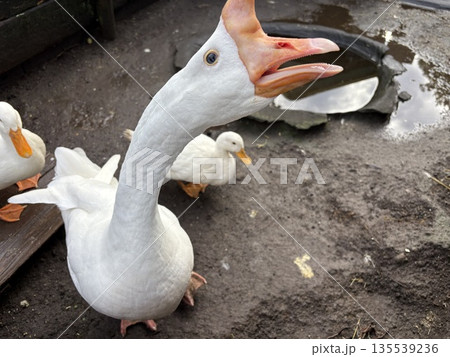 並んで歩くアヒルとガチョウ