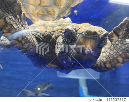 水槽で泳ぐカメ
