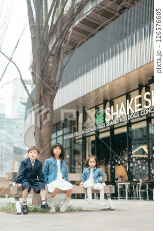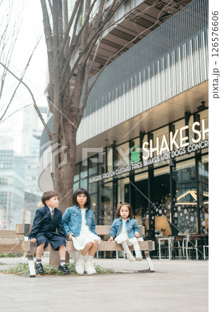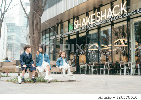 お花畑で遊ぶきょうだい 仲良しイメージ