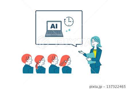 AI導入による業務効率化を説明する女性のイラスト