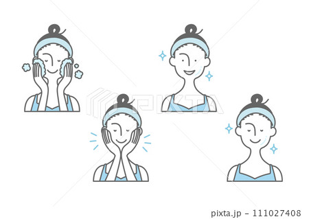 PMSで腹痛や頭痛に悩む女性・症状が改善した女性のイラスト素材