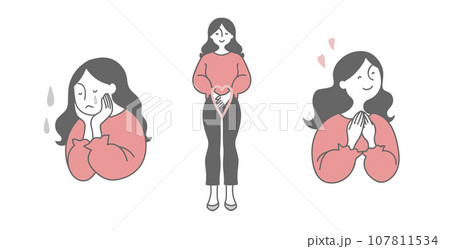 PMSで腹痛や頭痛に悩む女性・症状が改善した女性のイラスト素材