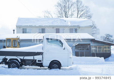朝、雪に輝く軽トラック